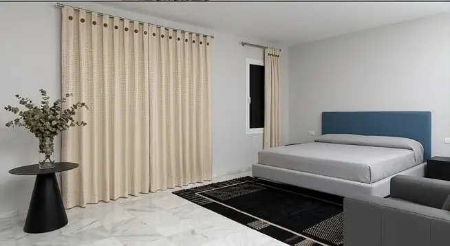 Gracias a su composición, esta cortina de algodón a medida permite crear espacios cálidos y relajados, perfectos para hogares que priorizan confort y estética natural.