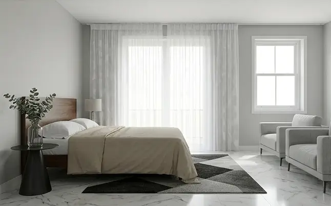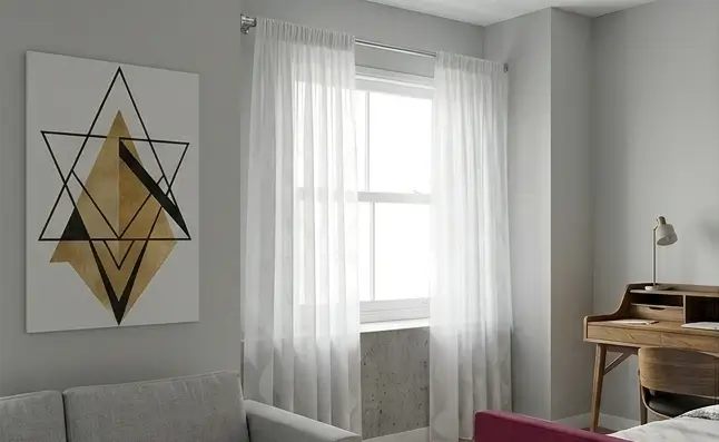 Se recomienda elegir cortina Sheet White de tul bordado, ya que permite el ingreso de luz natural y mejora el confort visual.