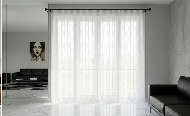 Las cortinas translúcidas decorativas en color blanco son tendencia en diseño interior por su capacidad de aportar luminosidad, elegancia y ligereza visual. Además, el sistema permite: