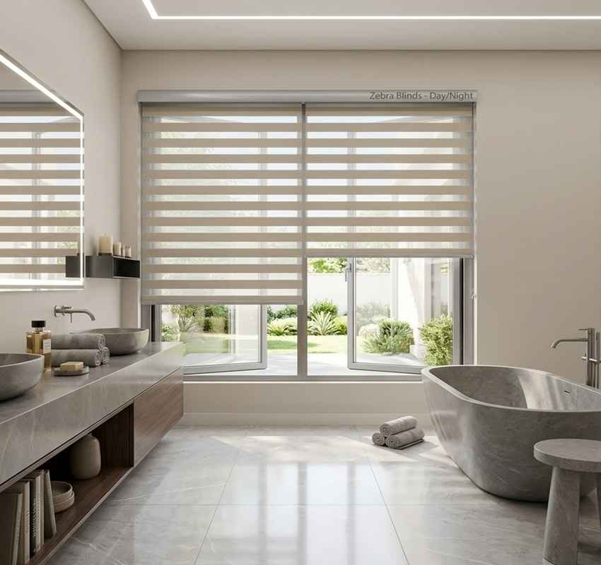 Su diseño moderno tipo dúo integra funcionalidad y estética en un solo mecanismo enrollable, ofreciendo privacidad adaptable y mejor confort térmico.